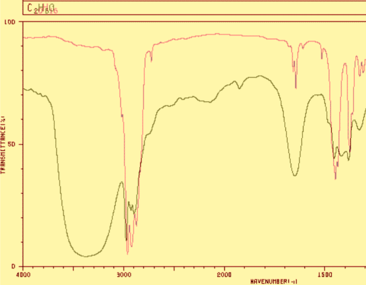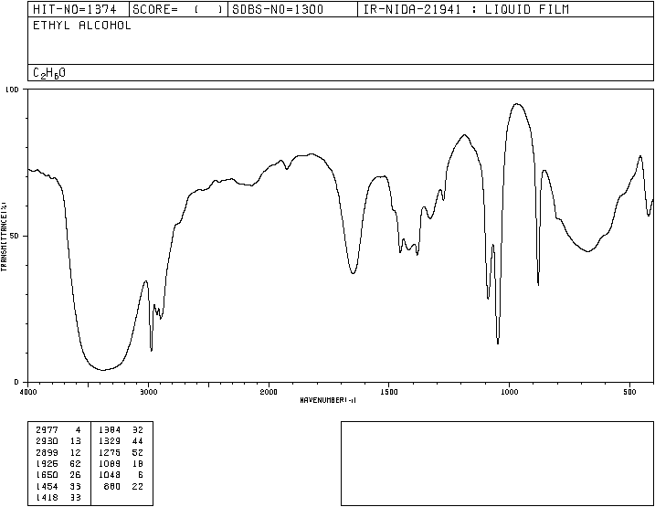Check for the IR: liquid film signature for ethanol and the possible interferent. Then look at the portion of the IR signature (fingerprint) in the 3000 range. Does the shape of the graph for the possible interferent resemble that for ethanol? Try layering a suspected interferent IR signature graph over the ethanol graph and looking through both graphs towards a light.